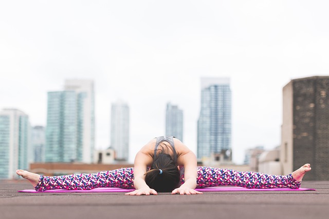 - 바닥에 앉아서 무리하지 않을 정도로 다리를 양쪽으로 크게 벌려줍니다.