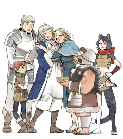 라이오스: 이 파티의 리더로, 전사이자 여동생을 구하기 위해 던전 깊숙이 도전합니다. 몬스터 요리에 대해 호기심을 가지고, 다양한 요리를 시도하며 파티를 이끌어 갑니다. 냉철하고 책임감 있는 성격으로 팀을 이끄는 중요한 인물입니다.