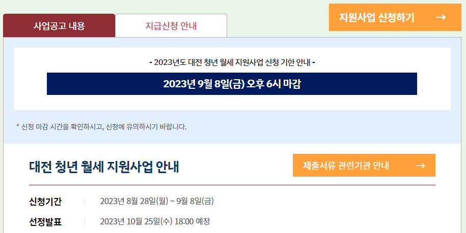 대전광역시에 주소를 둔 만 19세~39세 이하의 청년들에게 주거비 부담을 덜어주기 위한 방법으로 월세를 지원하는 사업을 하고 있습니다. 신청일은 9월 8일 금요일 18:00시까지 접수가 가능하니, 해당되는 분들은 바른 신청으로 혜택을 모두 받아 보시기 바랍니다.